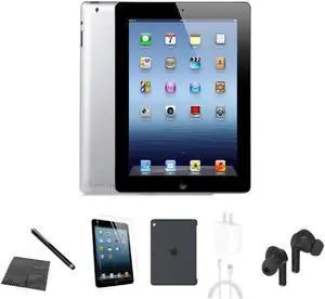 Apple iPad 4 A1458 (WiFi) 16GB Black Bundle w/ Case, Bluetooth Earbuds, Tempered Glass, Stylus, Charger