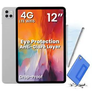Callsky-Kids 12 Inch Android 15 Tablet: 2000x1200 FHD Eye-Protection Drawing Tablet, 16GB+256GB Octa-Core, 4G Volte, Digital Notebook Includes Active Stylus & Drop-Proof Case for Students & Creatives