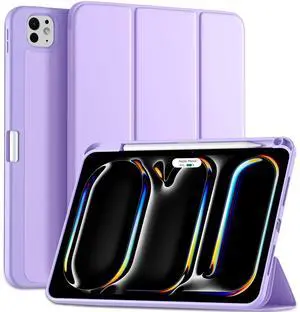 Kidopire New Compatible with iPad Pro 11 Inch Case (M4 2024/M5 2025) with Pencil Holder, Smart Cover with Protective Trifold Stand & Soft TPU Back, Auto Wake/Sleep, Support Pencil Pro, Lavender