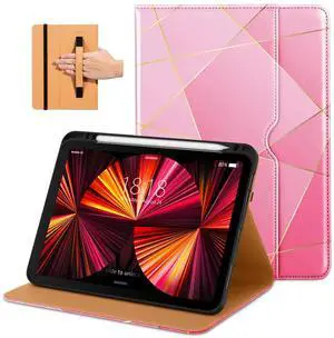 DTTO Case for iPad Pro 11 Inch 4th / 3rd / 2nd / 1st Generation 2022/2021/2020/2018,Premium PU Leather Folio Stand Cover with Hand Strap, Auto Wake/Sleep,Multiple Viewing Angles, Brown