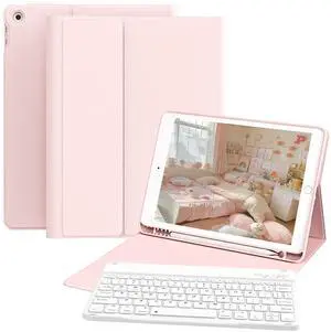 ZOPSGYU Keyboard Case for iPad 9th Generation 2021 10.2 Inch, Detachable Wireless Rechargeable Keyboard Case with Pencil Holder, Folio Stand Cover for iPad 8th Gen 2020/ 7th Gen 2019 -Pink