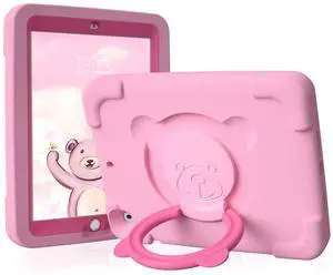 PZOZ iPad Kids Case Compatible for iPad 9th 2021 /8th 2020 /7th 2019 Generation 10.2 in, EVA Shockproof Rotate Handle Folding Stand Heavy Duty Protective Cute Cover for Boys Girls (Pink)