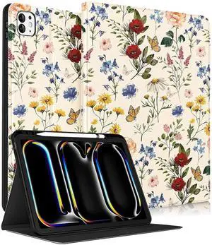 Uppuppy for iPad Pro 13 Inch Case 2024 - Cute Women Girls Folio Smart Cover with Pencil Holder Girly Flower Unique Pretty Aesthetic for iPad Pro M4 13 Inch Cases A2925 A2926 A3007