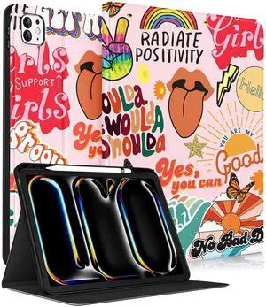 Uppuppy for iPad Pro 13 Inch Case 2024 - Women Girls Cute Folio Smart Cover with Pencil Holder Girly Kids Pretty Unique Aesthetic for iPad Pro M4 13 Inch Cases A2925 A2926 A3007