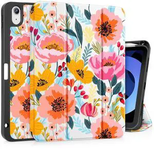 Tuiklol Case for iPad Air 11 inch (M3 2025/M2 2024) 7th/6th Gen/iPad Air 10.9 inch 5th/4th Gen 2022 2020 with Pencil Holder,Slim Protective Auto Sleep/Wake Trifold Stand Cover, Vibrant Floral