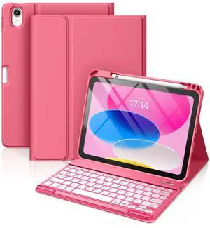 SQQSOOZ Keyboard Case for iPad (A16) 11th Gen 11 Inch 2025, iPad 10th Generation 10.9 Inch 2022 with Pencil Holder, Stand Folio, Detachable Wireless Bluetooth Rechargeable Keyboard, Pink