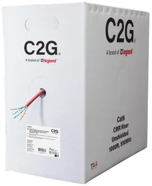 C2G 1000ft TAA Compliant Cat6 Bulk Unshielded Ethernet Network Cable - Red C2G56036