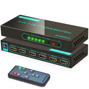 4K@60Hz HDMI Switch, 5 in 1 Out HDMI 2.0 Switcher with Remote Support Auto Switch, HDR10, Dolby Vision, Dolby Atmos, 18Gbps, CEC
