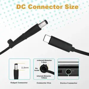 USB-C Type C to 7.4mm 5.0mm round Tip Charging Power Cable for Dell 65W 7.4mm*5.0mm round tip laptops