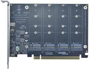 Vszerda M.2 PCIe Adapter x16 Gen4 for 4 Ports M2 SSDs, PCIe M.2 Expansion Card for 4 M.2 2280 2260 2242 2230 NVMe SSDs M Key