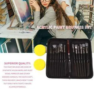 15PCS Acrylic Paint Brushes Set, Acrylic, Watercolor And Gouache Painting Brushes Foramatures And Professional Painter