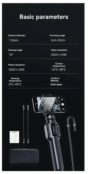 2MP Mini Type Industrial Borescope For Cars Inspection, 360 Degree Rotation Endoscope Camera With 8 LED For phone