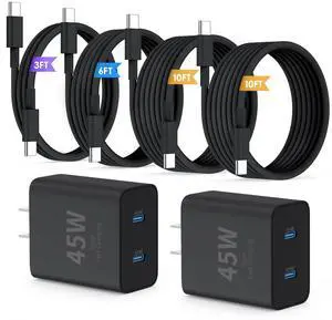 Super Fast Samsung Charger Type C,45W Dual Port USB C Fast Charger Block [2-Pack] & Extra Long 60W 3/6/10/10FT USB C Cable - PD Quick Charging 3.0 For Samsung Galaxy S25 Ultra/S24+/S23 iPhone 16