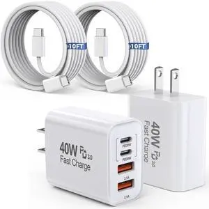 10FT iPhone 17 16 15 Pro Charger,2Pack 10Foot USB C to C Woven Cable Cord 40W USB C Apple Charger 4 Port PD&AC Charge Block Fast Charging for iPhone 17 Air/17 16 15 Pro Max/16e/16 Plus/15/15 Pro/iPad