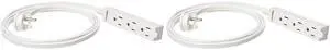 Features: This 6 ft power extension cord is made by Amazon Basics and features a Power Strip style with Plastic, Copper material. It supports a voltage of 125 volts and an input current of 13 amps. The cable is White in color and is UL listed. It comes with a Male-to-Female connector and does not require batteries.