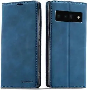 Case for Google Pixel 6 5G 6.4 inch Premium PU Leather Cover with Card Holder Kickstand Shockproof Flip Wallet Cover Blue