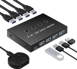 USB 3.0 Switch 4 Computers 3 Computers Keyboard Mouse Switch,4 Port USB Switch Selector Sharing 4 USB Devices,USB Switcher Compatible with Mac/Windows/Linux,with Desktop Controller &4 USB Cable