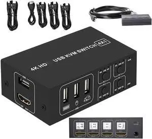 4 Port HDMI KVM Switch 4K@30Hz 1080P@60Hz 4 in 1 Out HDMI USB KVM Switcher for PC Laptop Keyboard Mouse