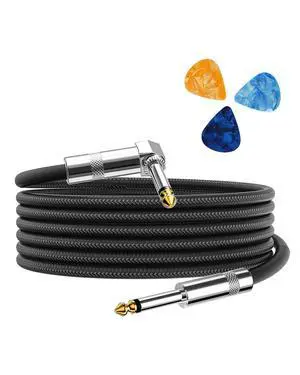 Guitar Cable, Guitar Cord 10ft AMP Cord for Bass & Electric Guitars/Keyboard/Mandolin TS 1/4 Inch Instrument Cable, Pro Audio Straight Angle Black