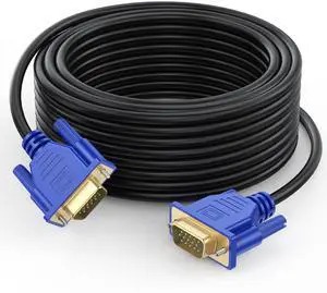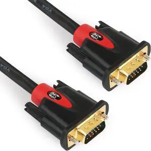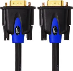 The VGA cord engineered with molded strain relief connectors for durability, grip treads for easy plugging and unplugging, and finger-tightened screws for a secure connection