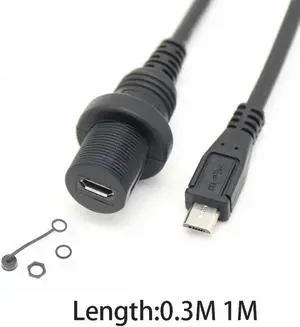 Aomoproing FOR Micro USB USB 2.0 Male Connector to Micro USB 2.0 Female Extension Cable Pitch 17.5mm With screws Panel Mount Hole