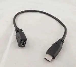 Aomoproing FOR 10pcs USB 3.1 Type C Male Plug to Mini USB Female Adapter Data Charger Sync Cable 27cm