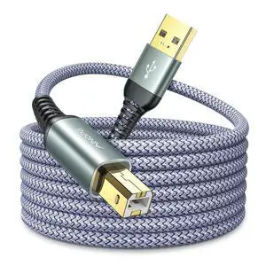 USB A to USB B Printer Cable 10ft High-Speed Nylon Braided USB 2.0 MIDI Cable, Printer Cord, Grey