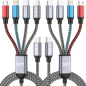 USB C 4 IN 1 Multi Charging Cable, Travel Essentials with Dual Type-C/Micro/IP Port, 2 Packs 5FT Nylon Multiple Charger Cord for iPhone 17 Pro Max/17 Air/16/15/14, Galaxy S25, iPad, Andorid and More- Brand: Jogrytece