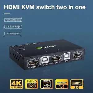 HDMI KVM Switch 1.4v Switcher 2 Port PCs Sharing 2 Devices for Keyboard Mouse Printer Monitor Selector HDMI Switch KVM