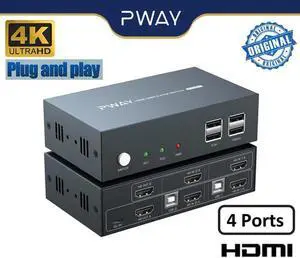 Switch HDMI-compatible 2 Port Box USB 4K for Mouse Adaptive EDID / HDCP Printer Plug and Play and Shared Monitor Keyboard