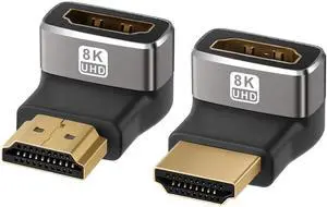 90 Degree HDMI 2.1 Adapter 2 Pack, (Up and Down) Right Angle HDMI Male to Female HDMI L-Shaped Connector Extender Support 8K@60Hz,4K@120Hz for Google Chrome Cast, Roku Stick, Wall TV, Laptop and PC