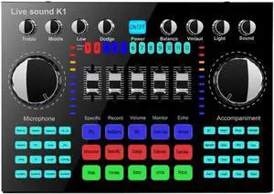 K1 Computer Phone Voice Changer HIFI Live Sound Card Mixer Board Streaming Audio Bluetooth 5.0 Universal