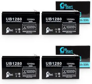 4 Pack - UB1280 Universal Sealed Lead Acid Battery Replacement (12V, 8Ah, 8000mAh, F1 Terminal, AGM, SLA, Includes 8 F1 to F2 Terminal Adapters) - Also Replaces CYBERPOWER CP1500AVRLCD, CP1000AVRLCD