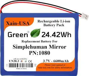Replacement Battery PN: BT1080 for Simplehuman Mirrors (ST3024 ST3026 ST3027 ST3028), 3.7V 6600mAh, (Please) Verify Part Number BT1080 (Found Under Your Mirror) Before Purchase, Thank You.