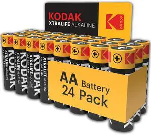 KODAK AA Alkaline Batteries (24 Pack) Double A High-Performance Battery Pack, 10-Year Shelf Life, Long-Lasting 145% Extra Life (24 Count Xtralife) for Household and Office Electronics