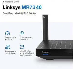 Linksys Mesh WiFi 6 Router, Dual-Band, 1,500 Sq. ft Coverage, 20+ Devices, Speeds up to (AX1500) 1.5Gbps - MR7340
