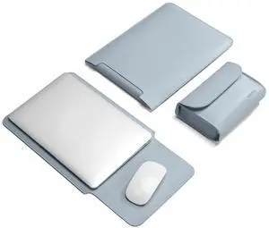 MokaZii 13-14 inch Laptop Sleeve Protective Case for MacBook Air/Pro 13-14" M5/M4/M3/M2/M1 (Pro/Max), [3 in 1] PU Leather Laptop Waterproof Slim Cover with Stand and Mouse for MacBook - Pink