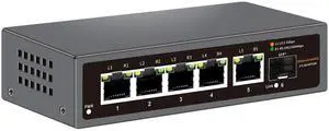 4 Port 2.5G Unmanaged Network Switch with 4X 2.5G RJ45 + 2X 10G SFP+ Fiber Ports, VLAN Isolation, Metal Housing, Plug and Play for IP Cameras, APs, Surveillance & Small Business