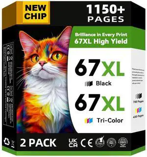 67XL Ink Cartridges Black/Color Combo Pack Compatible for HP 67XL Compatible for HP Ink 67 XL Works for HP DeskJet 4227e 2827e 2755e 2855e 2842e 2800 4155e 2755 2852e Envy 6055e 6000 6455e Printer