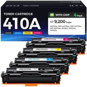 410A Toner Cartridges 4 Pack Replacement for HP 410A CF410A CF411A CF412A CF413A 410X for MFP M477fdw M477fdn M477fnw Pro M452dn M452nw M452dw Printer(Black Cyan Magenta Yellow)