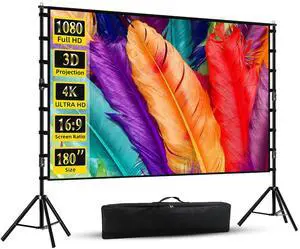 Projector Screen with Stand, Wootfairy 180 inch Portable and Foldable Projection Screen 4K HD 16:9 Rear Front Wrinkle-Free Movie Screen with Carry Bag for Indoor Outdoor Home Theater Backyard Cinema