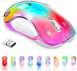 memzuoix 2.4G Wireless Mouse with Customizable Cover & 9-Color LED - Rechargeable Ergonomic, 1200 DPI, 5 Buttons, USB Receiver for PC/Mac - Pink