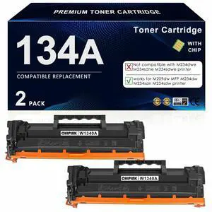 Chipink 134A Black Toner Cartridge (with Chip) Replacement Compatible for HP 134A Toner Cartridge W1340A 134X W1340X Ink for Laser 209dw MFP M234dw M234sdw Printers (2 Pack, Black)