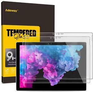Adeway (2 Pack Tempered Glass Screen Protector for Surface Pro 6-5 - 4 (12.3 inch), Premium HD Clear, High Responsivity, Scratch Resistant,Anti Glass