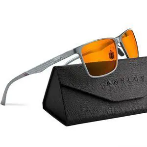 ANYLUV Blue Light Glasses Men/Women, Al-Mg Gaming Blue Light Blocking Glasses, Relieve Eyestrain Eye Protection-Grey