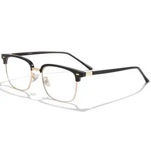 ANRRI Blue Light Glasses for men Metal Browline Frame UV 400 Protection Clear Lens Anti Eyestrain Computer Gaming Glasses Black Gold Frame
