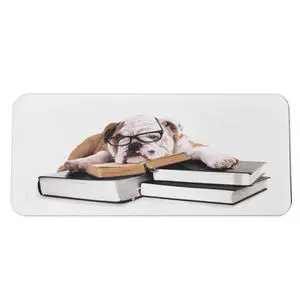 Ambesonne English Bulldog Computer Mouse Pad, Pure Breed Bulldog with Glasses and Books Hardworking Animal, Rectangle Non-Slip Rubber Mousepad Large, 31" x 12" Gaming Size, Black Pale Brown White