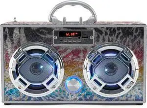 Wireless Express - Boombox Speaker with LED Lights Retro Bluetooth Speaker w/Enhanced FM Radio - Perfect for Home and Outdoor (Animal Bling)