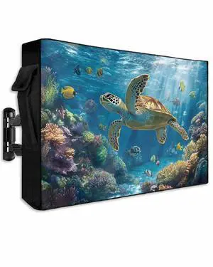 DOME-SPACE Modern Ocean Tropical Turtle Coral Outdoor TV Cover for Outside Flat Screen Televisions, Underwater Animal Weatherproof TV Screen Protector with Zipper for 60 to 65 Inch Screens