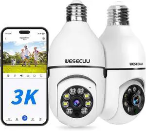 3K Light Bulb Security Camera -5G& 2.4GHz WiFi Security Cameras Wireless Outdoor Motion Detection and Alarm,Two-Way Talk,Color Night Vision,Human Detection, 500MP Ultra HD